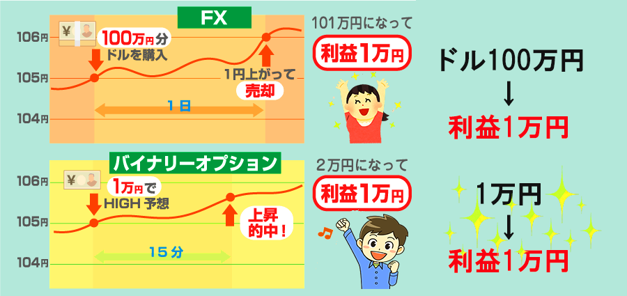 バイナリーオプションとFX(外国為替証拠金取引)の違い